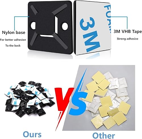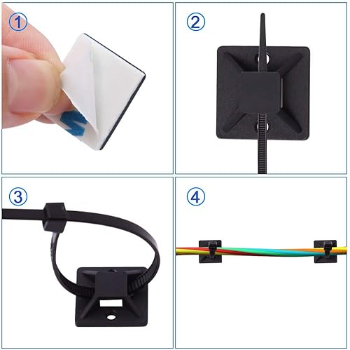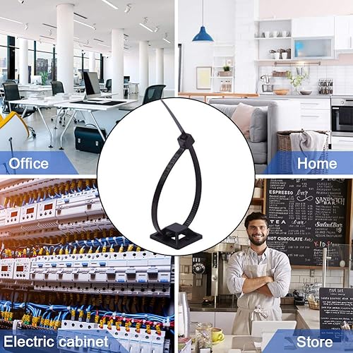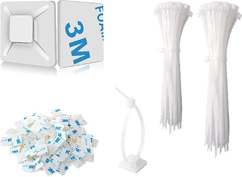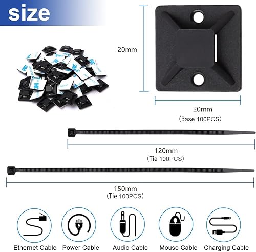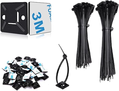 SZXULI 200 Stück Kabelbinder Schwarz Set 120mm/150mm und 100 Stück Starken Selbstklebend Basishalter, Nylon Kunststoff Kabel Binder, UV-beständiges, für Heim Büro Industriell