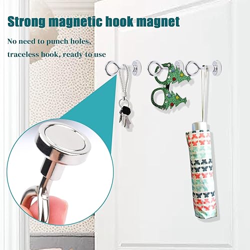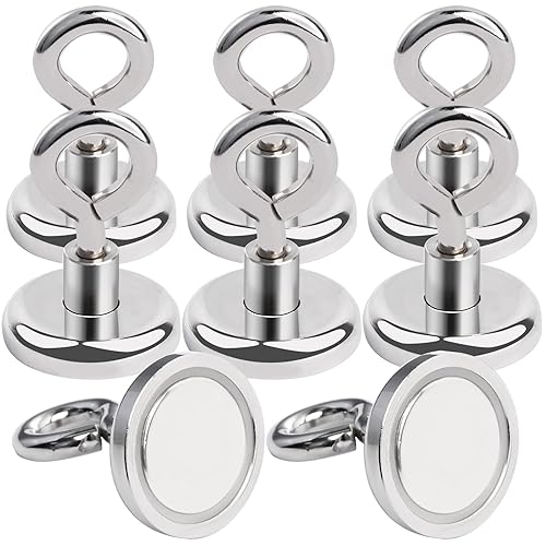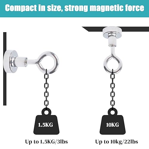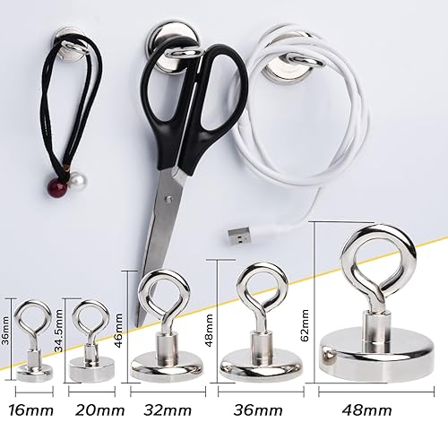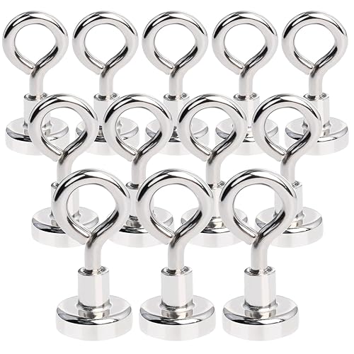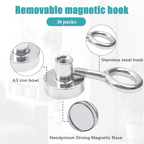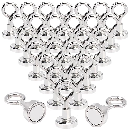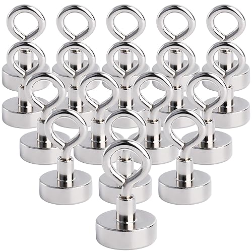 MIN CI 30 Stück Magnethaken Extra Stark, 16mm Neodym Magnete Haken Zugkraft 8kg(17.6lbs) Ösenmagnet Magnet mit Haken Magnethalterung Rund Magnet Magnetische Haken für Camping Garage Küche Büro
