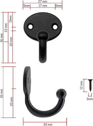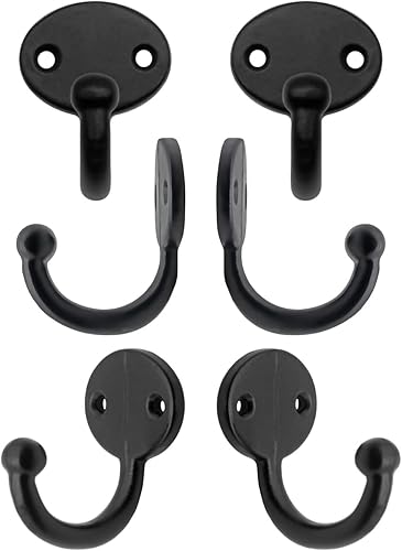 Fuxxer® 6er Set Klassische Garderoben-Haken, Handtuch-Haken, Vintage Schwarz, Oval