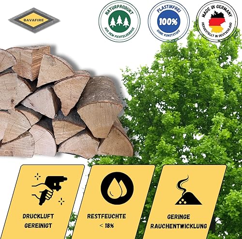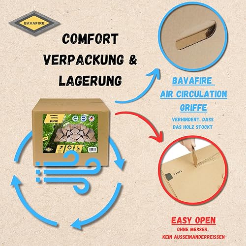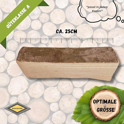 BAVAFIRE Brennholz Buche 20kg - Kaminholz getrocknet & ofenfertig 25cm Scheitlänge - Feuerholz für Kamin, Ofen & Feuerschale