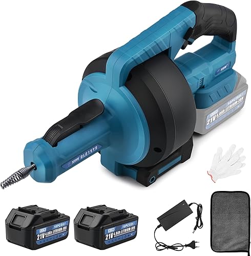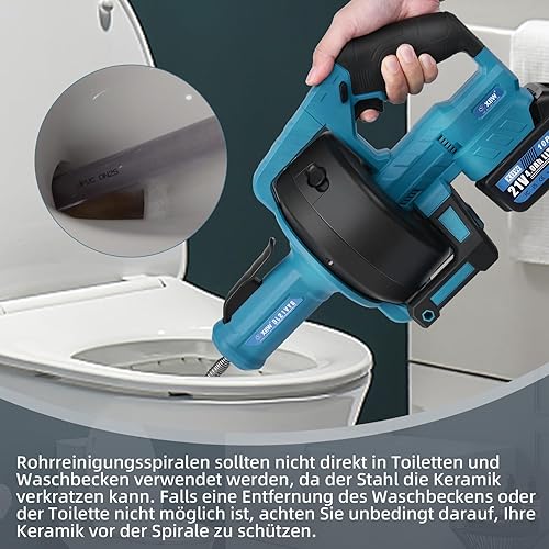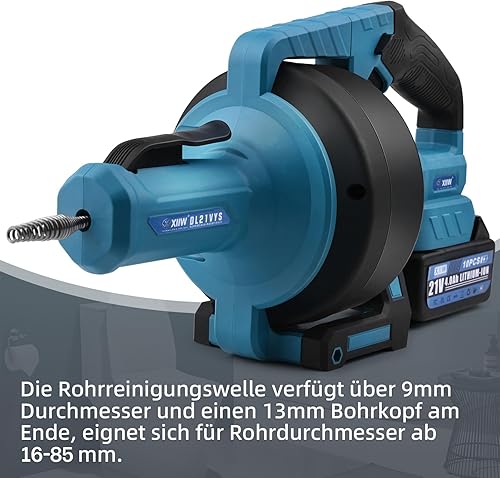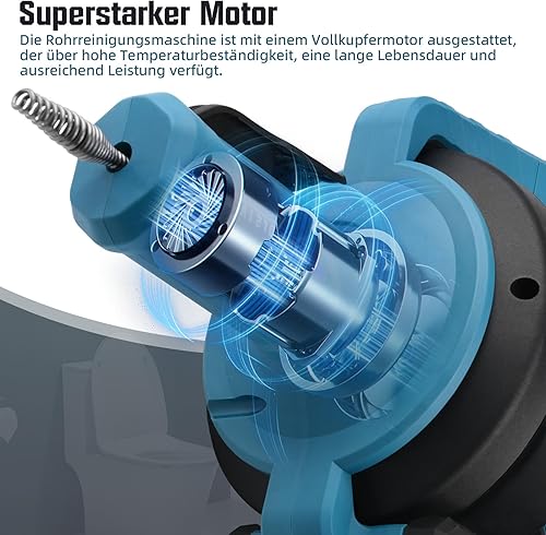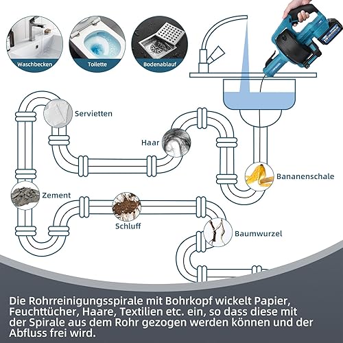Rohrreinigungsmaschine Akku 610 U/min Kompatibel mit Makita 18V Akku, Ø9mm 7.6M Rohrreinigungsspirale für Ø16-85 mm Rohrleitung, Elektrisch Abflussreiniger Rohrreiniger Drain Clean Rohrreinigungsgerät