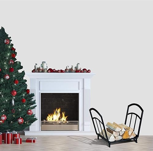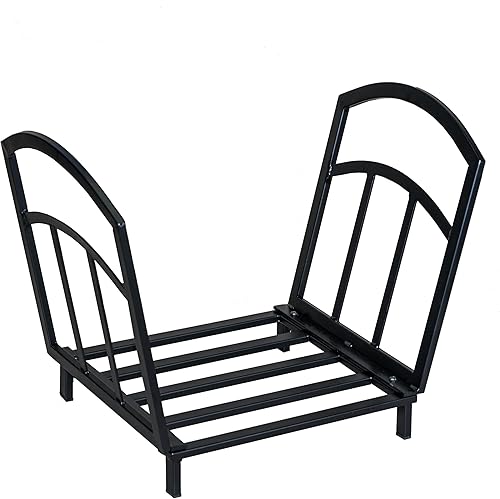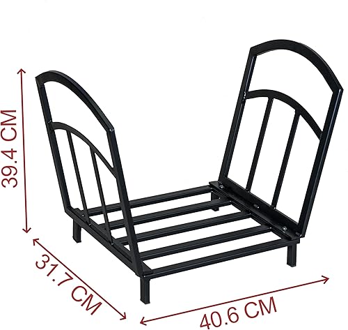Loywe Holzkorb Kaminholz 40.6X31.7X39.4CM Metall Brennholzkorb Holzwiege Kamin Feuerholzkorb für Innen und Außen mit Stabilem Sockel & Griffen in Schwarz