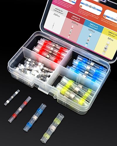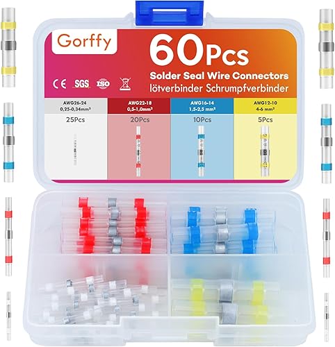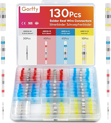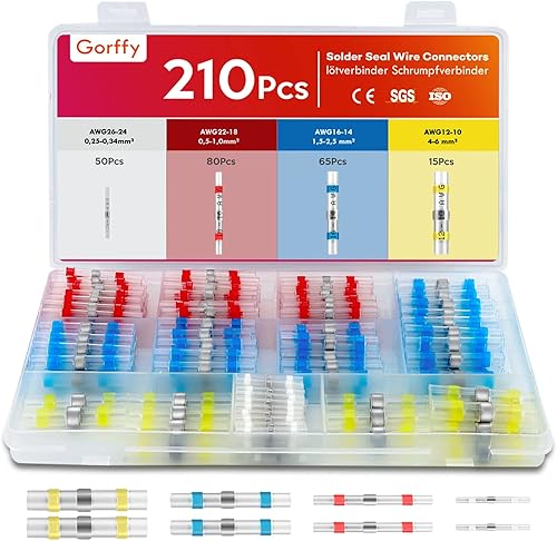 Gorffy Lötverbinder Set 210 Stk, KFZ Kabelverbinder Wasserdicht, Schrumpfschlauch mit Lötzinn, Kabel Quetschverbinder Set, Weiß Rot Blau Gelb
