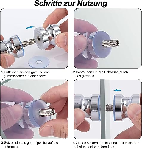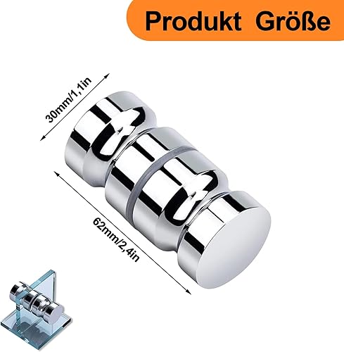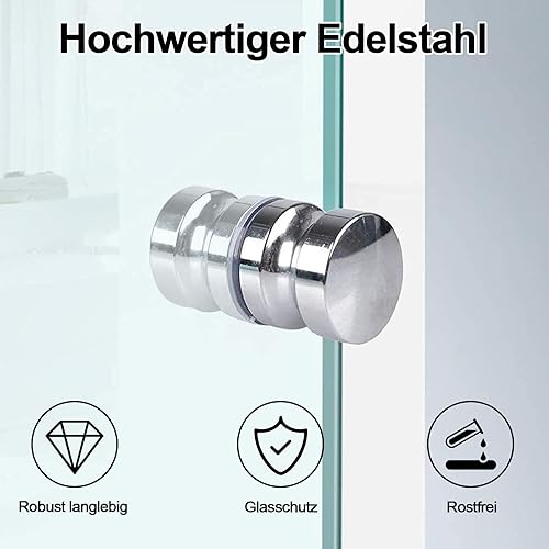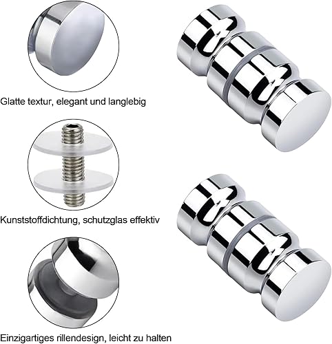 aghoer Dusche Türknopf, 2 Stück Duschtürknopf, M8 x 30mm Dusche Türknopf Edelstahl, Dusche Griff, für Duschtür Glastüren Schiebetür