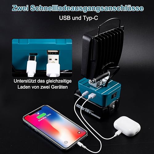 Sentoo Akku Lampe für Makita 18V, 48W 4800LM Kabellose Led Arbeitsleuchte Akku, Tragbare Flutlichter mit 2 Modi Helligkeit Mini Baustellen Lampe für Wartungsarbeiten Blau