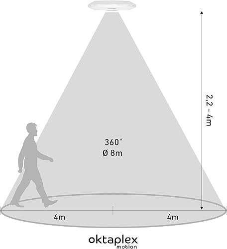 Oktaplex Ina Bewegungsmelder Innen 360 Grad 8m Reichweite LED geeignet weiß Aufputz 230V mit Dämmerungssensor