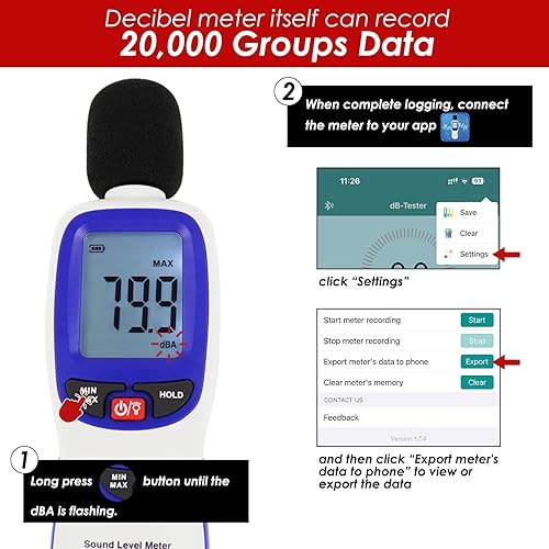 Dezibel-Messgerät, kabellos, Schalldämmungsmesser mit App, Datenprotokollierung, Bluetooth, tragbar, Schallpegelmesser, hohe Genauigkeit, SPL-Meter für Klassenzimmer, Büro, Zuhause usw.