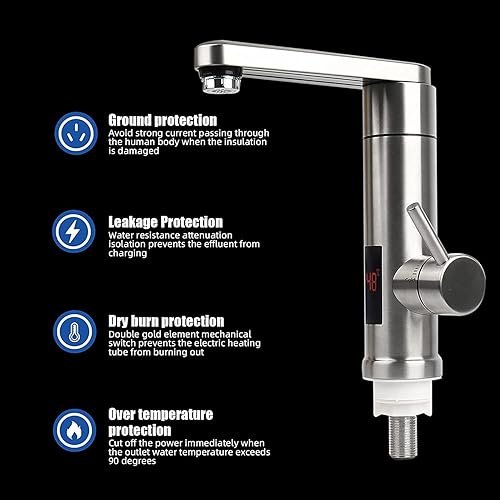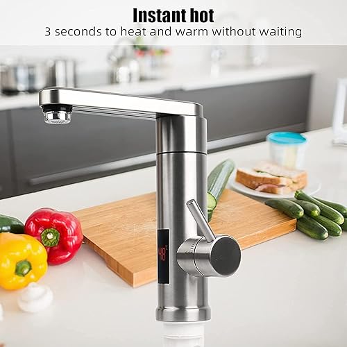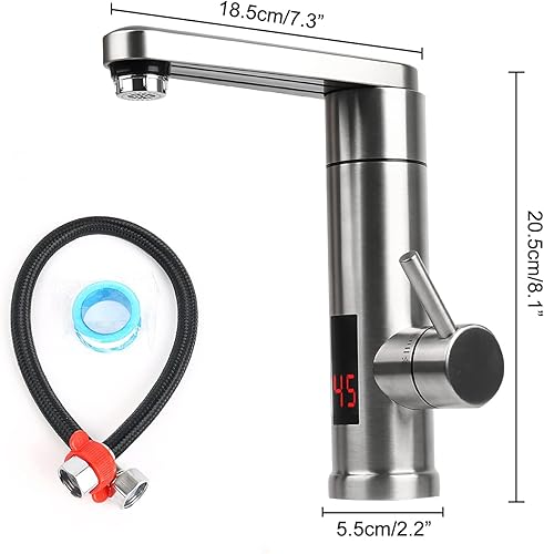 Elektrische Heizung Wasserhahn,220V 3000W Sofort Warm 304 Edelstahl Elektrisch Warmwasserhahn,360º Drehung KüChenarmatur mit LED Digitalanzeige,Einhand Spültischarmatur Für Küche,Bad