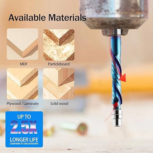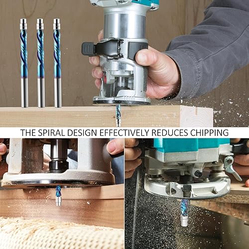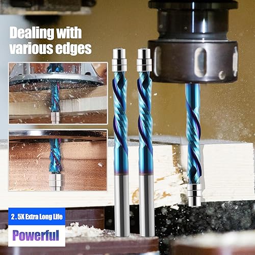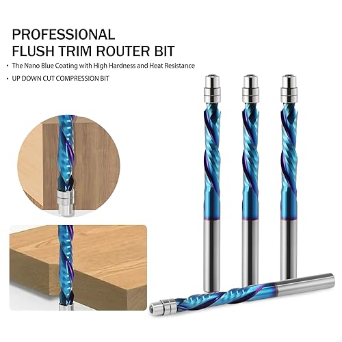 Kompressions-Bündigfräser-Bit, 6mm Schaft, Up & Down Spiral Flush Trim Router Bit Vollhartmetall, 28mm Schnittlänge mit ano Beschichtung, Fräser für Holzbearbeitung