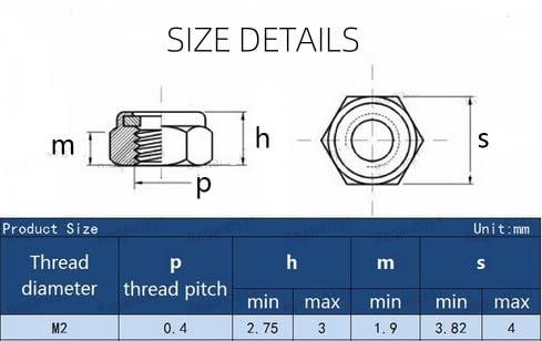 M2 Stoppmutter,Mutter, Selbstsichernde Mutter Edelstahl 304 Kontermutter,Sechskantmutter Sechskant-Kontermuttern,mit Nyloneinsatz,zum Verbinden und Befestigen Verschiedener Komponenten(M2,100 Stück)