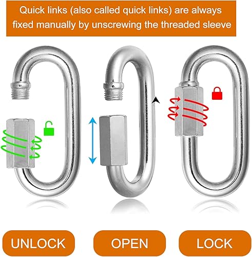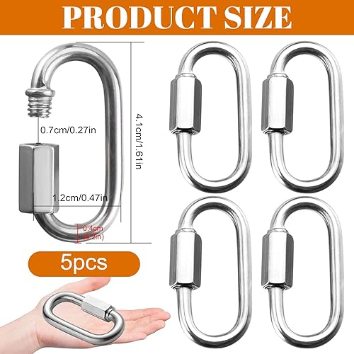 5 Stück Edelstahl Schraubverbinder M4 Edelstahl kettenglieder Schäkel Groß 4MM Drahtseil Zubehör Kettenverbinder Schlüsselanhänger Schnellverschluss Quick Link