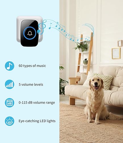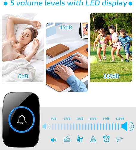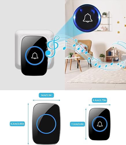 JOFLVA Funkklingel, Mit Batterie Doorbell 300M Reichweite Ip55 Wasserdicht Elektronische Türglocken Türgong, 60 Melodien Mit Led-Blitz,5 Lautstärkestufen Klingeltaster, schwarz Funk-Türklingel-Set.