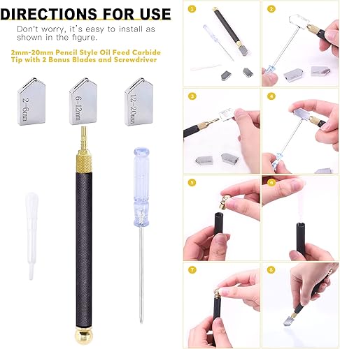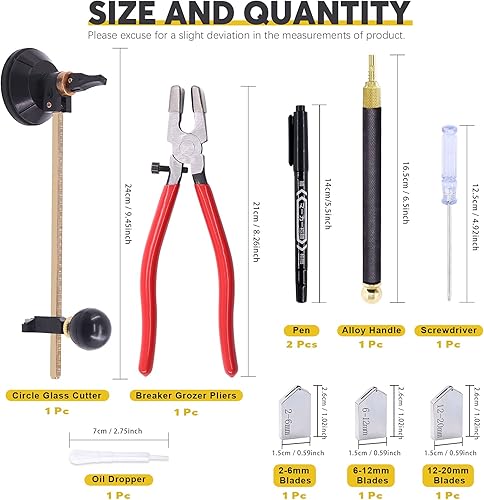 Mardatt Glasschneider-Werkzeug-Set mit verstellbarem runden Glasschneider, Glasschneider und Marker für Spiegel, Fliesen, Mosaik