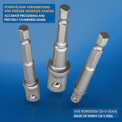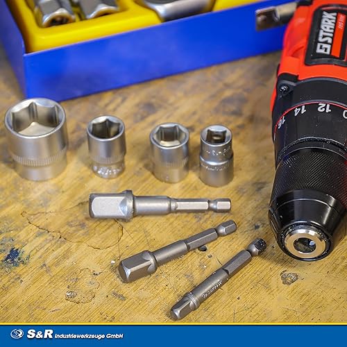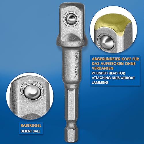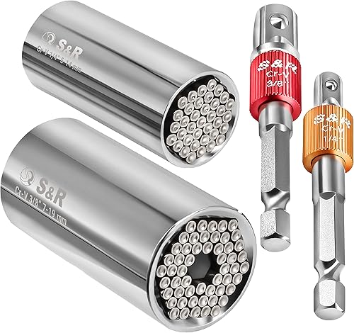 S&R Universal Steckschlüssel, Multi Stecknuss Set, 4-tlg, 2 x Multifunktion-Nuss 5-14 mm und 7-19 mm, 2 x Sechskant Adapter 1/4' und 3/8' Vierkant, einfaches Lösen von Muttern, Haken, Bolzen, uvm