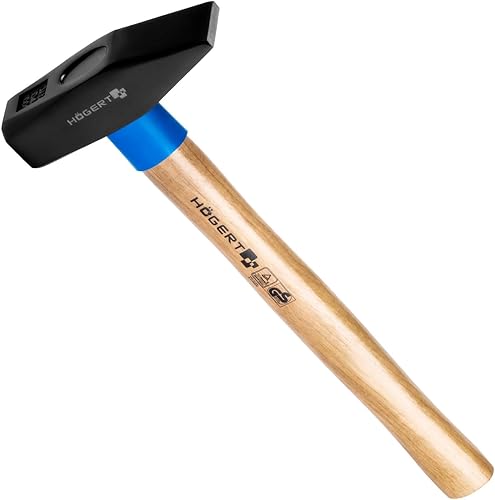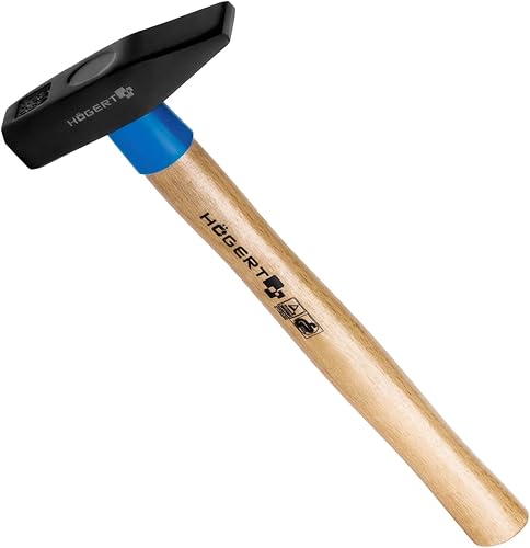 Professioneller Hochleistungs- Schlosserhammer 1.000gr. mit Holzgriff aus Esche | C45 Kohlenstoffstahl | Bankhammer | DIN 1041 (Schlosserhammer 1.000g)