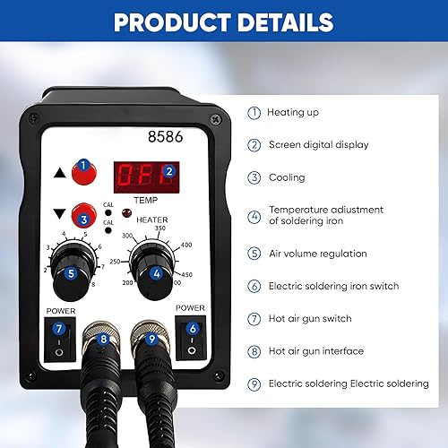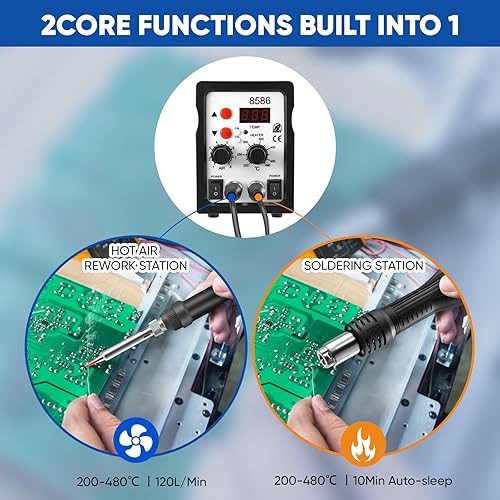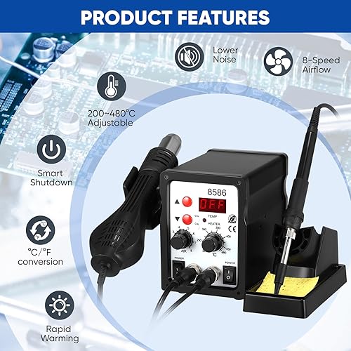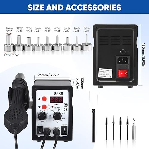 700W Lötstation 2 in 1 Heißluft Lötstation, 8586 Entlötstation Soldering Station Lötkolben Station mit LED Display,DIY-Projekten, Nachbesserungen, Reparaturen
