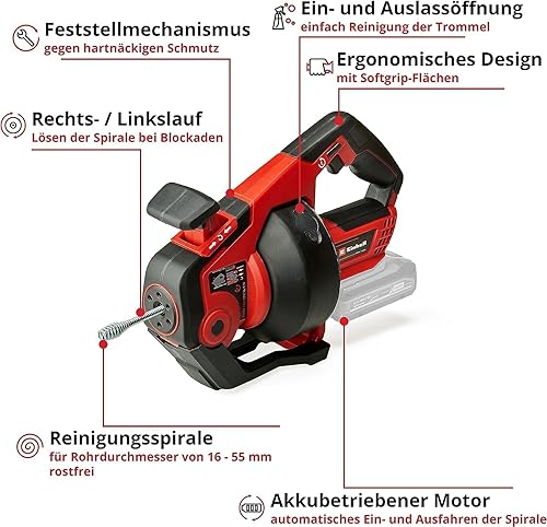 Einhell Akku-Rohrreiniger TE-DA 18/760 Li-Solo Power X-Change (18 V, Li-Ion, 7,6 m lange Reinigungsspirale, geeignet für Rohrdurchmesser 16-55 mm, Lieferung ohne Akku & Ladegerät)
