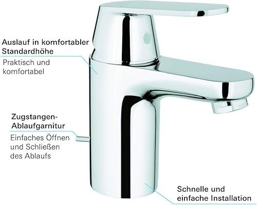 GROHE Eurosmart Cosmopolitan | Badarmatur - Einhand-Waschtischbatterie, mit Ablaufgarnitur | chrom | 32830001