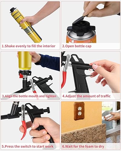Yulado Schaumpistole Bauschaum, Upgrade Bauschaumpistole, Schaum Muss Nicht Gereinigt Werden, Metallgehäuse Mit Ptfe Überzogen, Geeignet Zum Abdichten, Füllen, Abdichten, Für Den Heim-Und Bürogebrauch