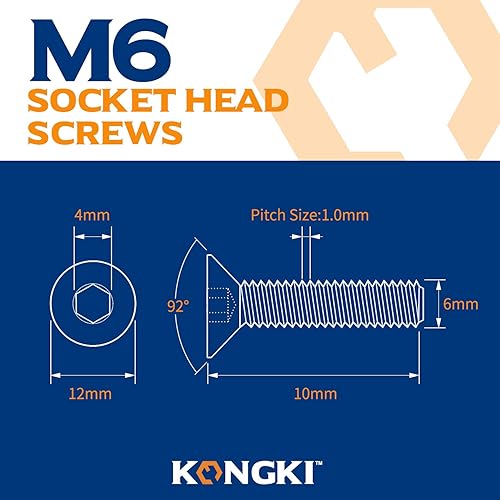 (40 Stück) M6x35mm Senkkopfschrauben mit Innensechskant Schrauben 10,9 Grad Kohlenstoffstahl Innensechskantschraube Vollgewinde schwarz
