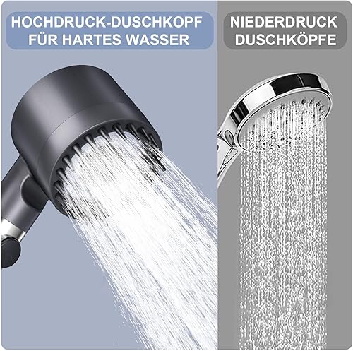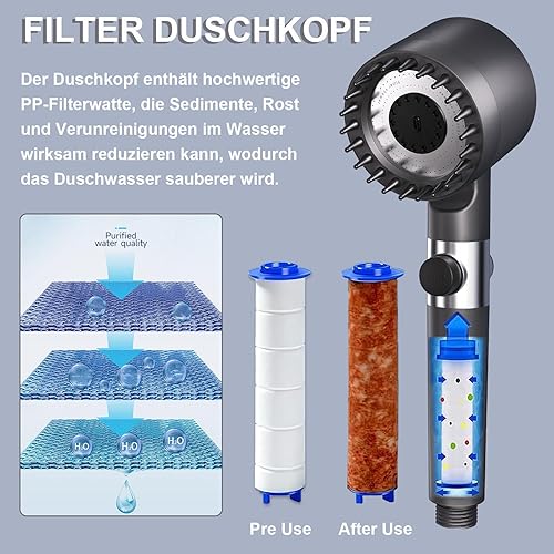Duschkopf mit Schlauch, Duschbrause mit Schlauch 1,5M, Duschkopf Wassersparend mit Filter, 3+1 Strahlarten Sparduschkopf Handbrause Dusche für Hartes Wasser, Filter Shower Head