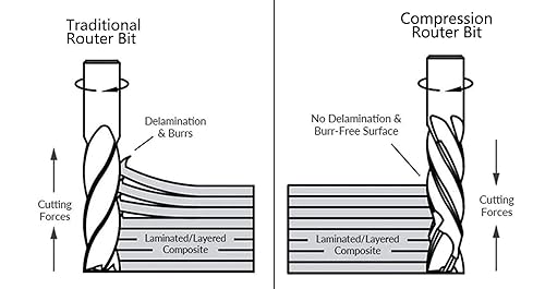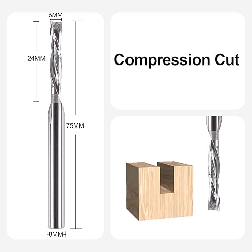 SpeTool Spiralfräser 8mm Schaft Kompression 6mm Schnittdurchmesser 24mm Schnittlänge Nutfräser CNC Fräser für Oberfräse Spiralnutfräser Langlochfräser Holz Holzfräser VHM Schaftfräser Router Bit