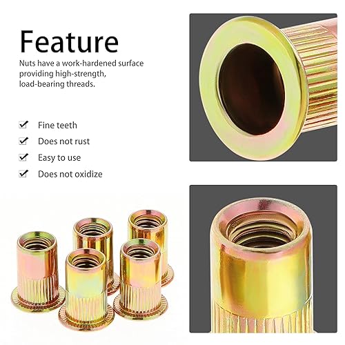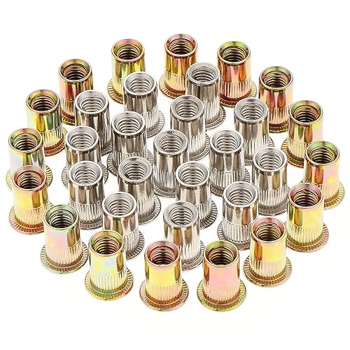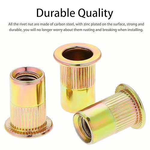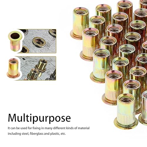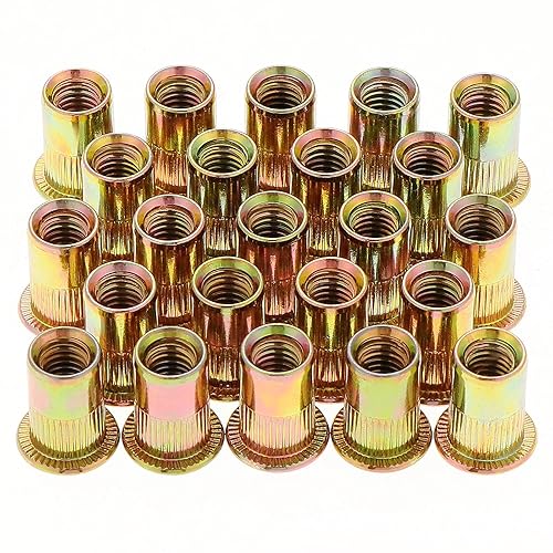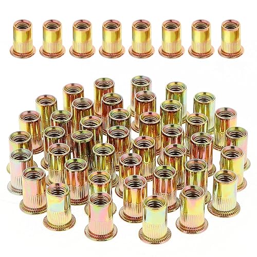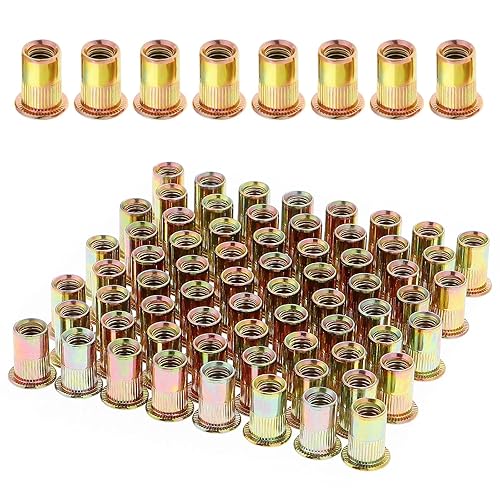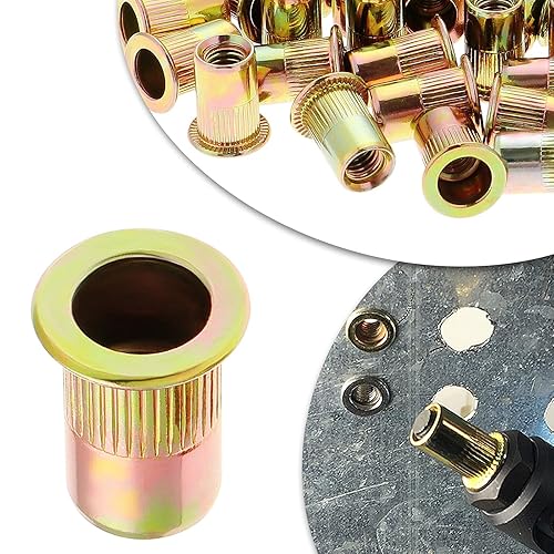 Gueenky 100 Stück Nietmuttern M8 Verzinkt Kohlenstoffstahl, Einnietmuttern M8 Kohlenstoffstahl Einziehmuttern Nutsert Gewindenieten Blindnietmuttern Nietmuttern für Metall Kunststoff
