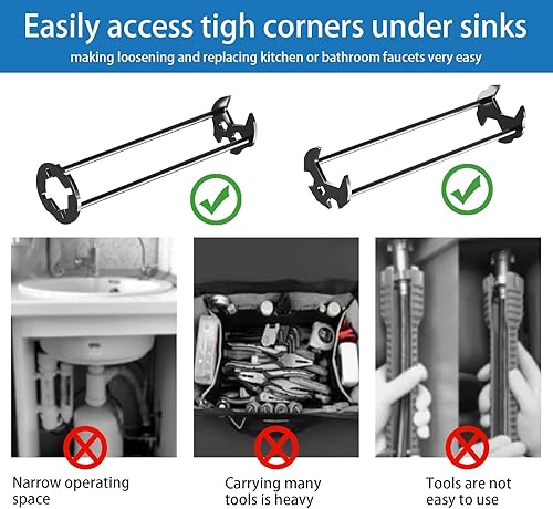 LZYDKH 2 Stück Beckenschlüssel Multifunktionaler, Spülenschlüssel Universell Armaturenschlüssel Wasserhahn Klempner Schlüssel Installationswerkzeug für Waschbecken Küchen(Schwarz)