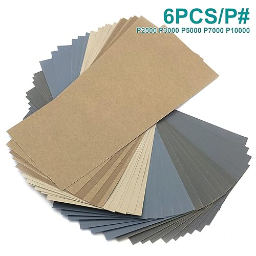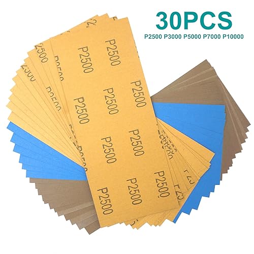 30pcs Schleifpapier Körnung 2500, 3000, 5000, 7000 and 10000 Schleifblätter Sandpapier für Auto Holzmöbel Stein Lack Metall Glas, 9,3x23cm pro Blatt