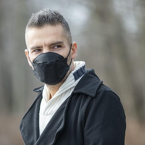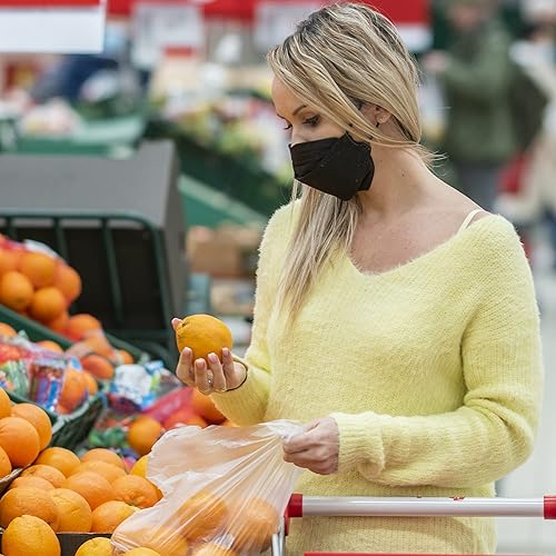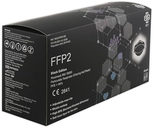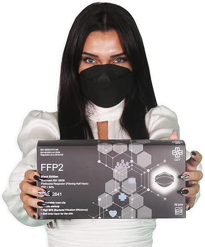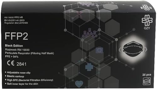 5RMED FFP2 Maske Fischform Schwarz Koreanisches Modell Schachtel à 25 Stück Mit Gummiband und anpassbarem Nasenbüge 5 Filtrationsschichten | FFP2 Masken