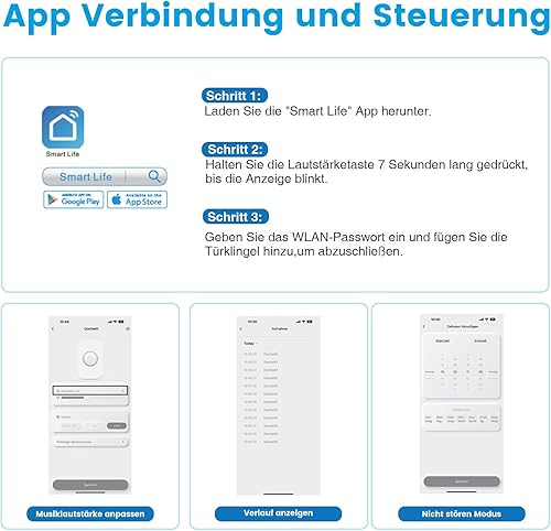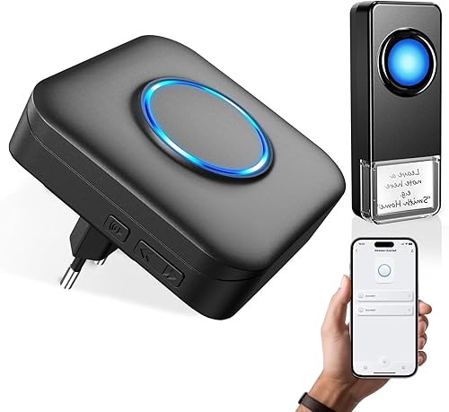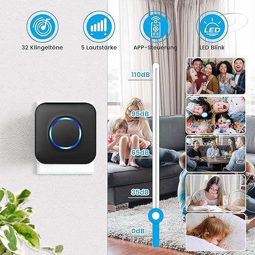 WiFi Türklingel Funk, Funkklingel Aussen Wasserdicht Kompatibel mit Smartphone App, 0-110dB Laute Klingel Haustür mit 32 Melodien, Doorbell mit Fernbenachrichtigung, Haustürklingel mit LED-Blitz