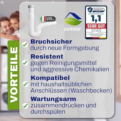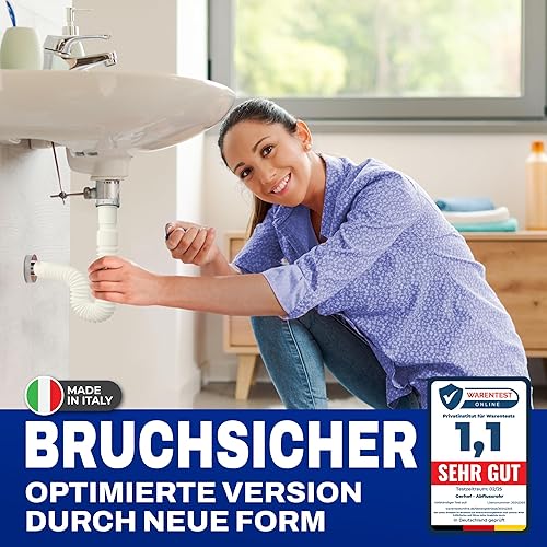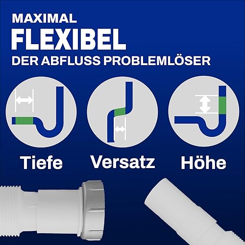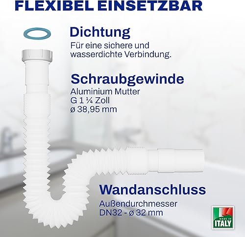 Flexibler Ablaufschlauch Werkzeugfreie Montage, 1 1/4' x 32 mm, Siphon/Geruchsverschluss Ausziehbar für Badezimmer Waschbecken, Abfluss Rohr, Siphon, 720 mm Länge, Abflussrohr Waschtisch