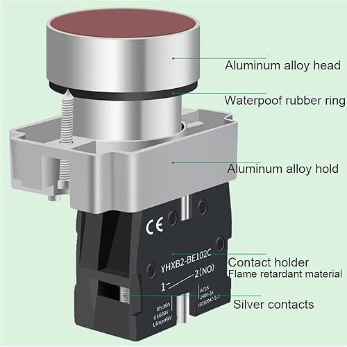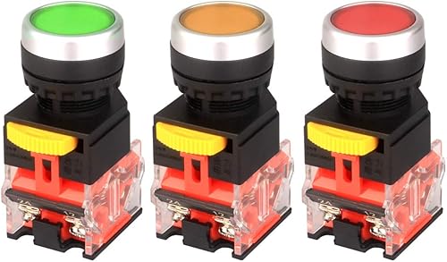 Gebildet 3pcs 22mm 10A 12V-24V-48V-110V-230V-380V 1NO 1NC DPST Momentan-Druckknopfschalter LA38-11BN(Rot/Gelb/Grün)