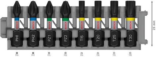Bosch 8x PRO Torx Impact Bit (170 x 120 mm, Professional Zubehör Schraubendreher, Schraubendreher)