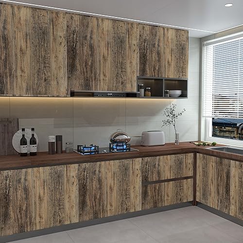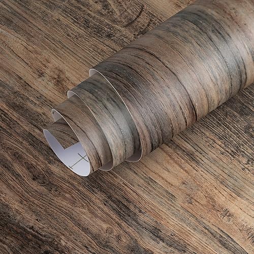 JSEVEM 40CM×9M Braun Grau Blue Selbstklebend Holzoptik Tapete Vinyl Vintage Holzfasertapete Tapeten Klebefolie Wandtapete Selbstklebende Wohnzimmer Möbelaufkleber Selbst Aufkleben Wandpapier Küche