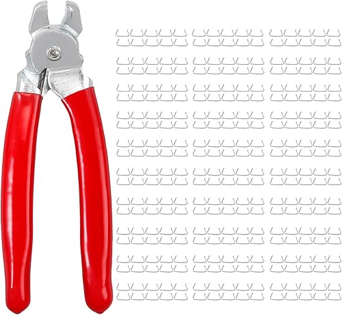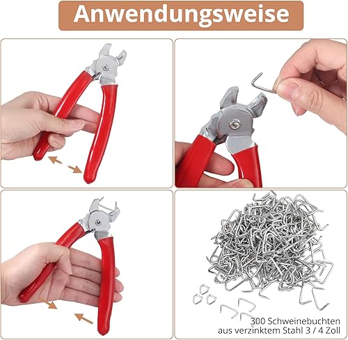 Kamtop Hog Ringzange Federbelastet Zangen Set Hog Ring Zange mit 300 verzinkten Hog-Ringen(3/4 Zoll) TRP-Material Griff für Möbelinnenräume Tierkäfige Hühnerställe Zaunpflege Fallen usw.