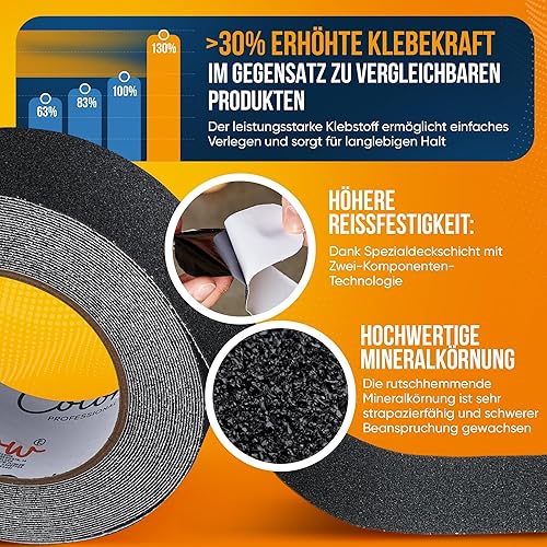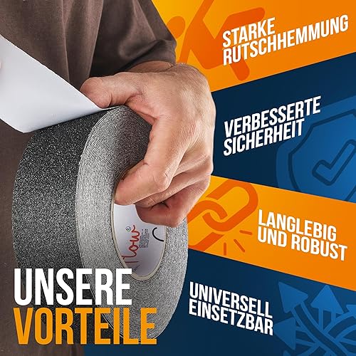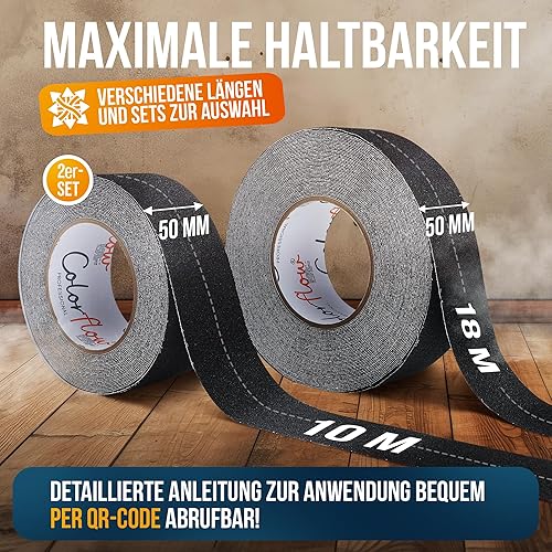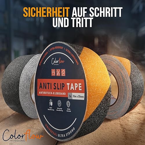 Colorflow® Antirutsch Klebeband 2x10m - Starke Rutschhemmung Innen & Außen - Grip Tape selbstklebend - Treppenstufen Antirutsch - Anti Rutsch Klebeband