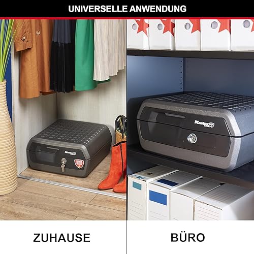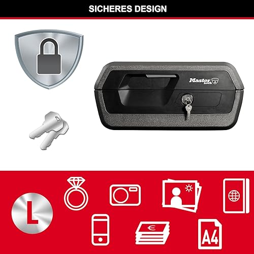 MASTER LOCK Sicherheitskassette [Feuer- und Wasserfest] [Large] [Schlüsselschloss] LCFW30100 – Für Ausweise, A4-Dokumente, kleine Elektrogeräte, Juwelen usw.