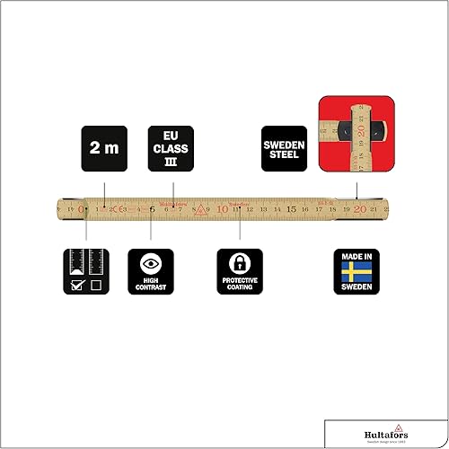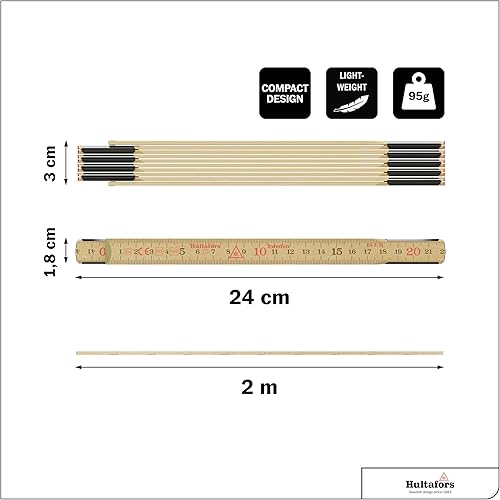 Original Schwedenmeter® Multipack 3 Stück I Zollstock 2m aus Glasbirke I Made in Sweden I 3x Gliedermaßstab mit Gelenken aus Schwedenstahl I Hochwertiger Meterstab EU-Klasse III I Hultafors I 100012