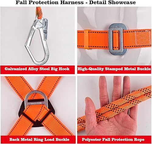 WEIKAXIMU Auffanggurt Fallschutz Sets: 5-Punkt Auffanggeschirr zur Absturzsicherung, 2 Haken, 2m Sicherheitsseil, mit Auffanggerät + Bonus: Reflektierende Weste & Rucksack