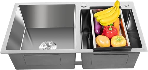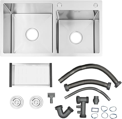 Spülbecken Edelstahl Doppelbecken Spüle Küche Mit Drainer Spüle Einbauspüle Doppelspüle Waschbecken Küchenspüle 2 Becken Flächenbündig 78x43x21cm