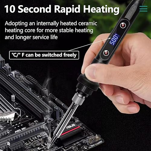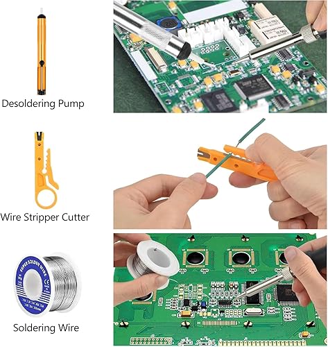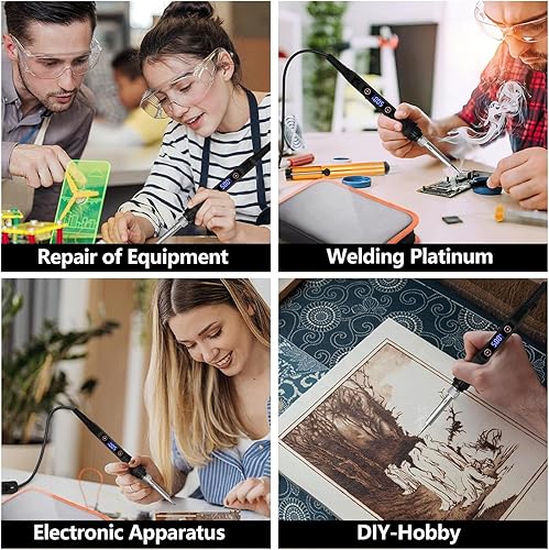 Lötkolben Set,80W LCD Lötkolben mit Einstellbar Temperatur 180-520°C,Ein/Aus Schalter,5 Wechselspitzen zum Löten,Entlötpumpe, Lötkolbenständer, Pinzette, Lötset für Elektrische Arbeiten.