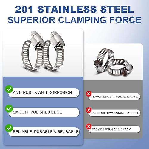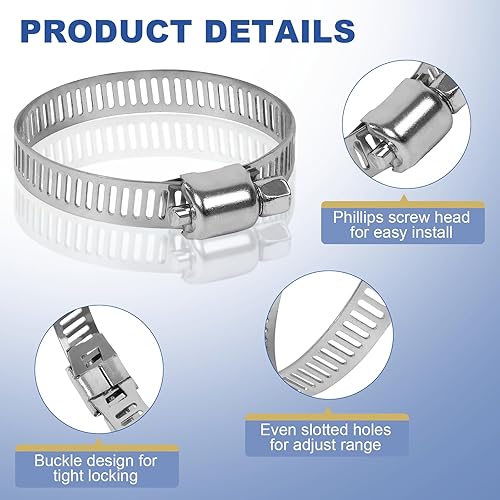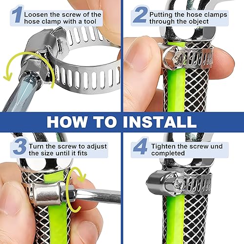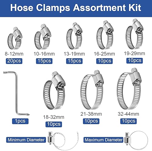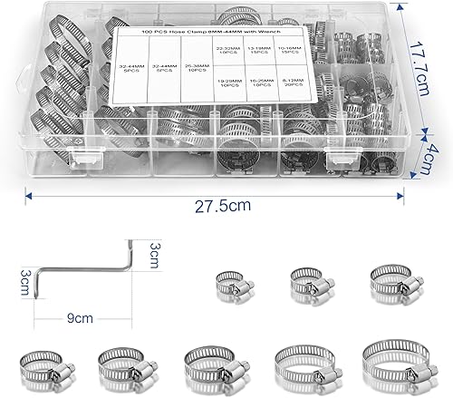 Gucass 100 Stück Schlauchschellen Set 8-44mm, Einstellbare Schlauchschellen Edelstahl Schlauchklemme, 8 Größen Rohrschellen Sortiment für Wasserleitung, Automotive, Haus Gas Rohr, Waschmaschine