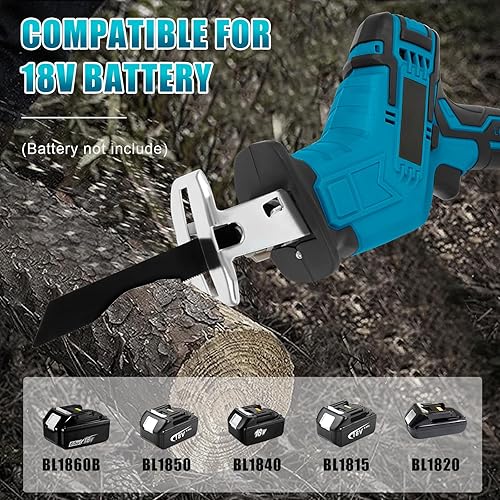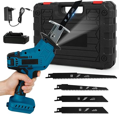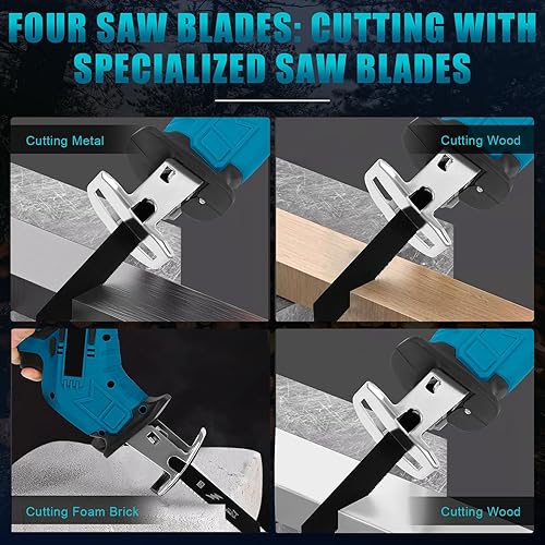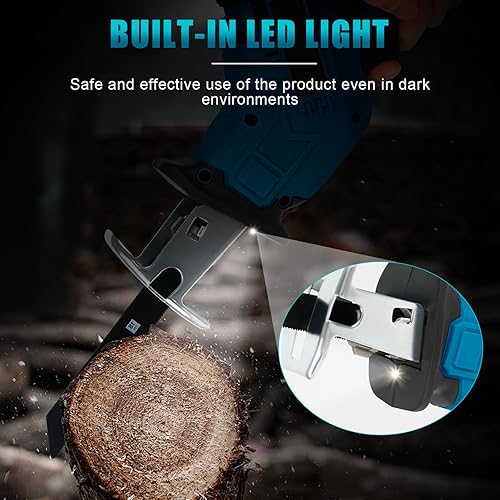 Akku Säbelsäge Kompatibel mit Makita 18V, Elektrische Reciprosäge mit 4 Sägeblättern Sicherheitsschloss LED Licht, Tragbare Säbelsäge für Metall, Holz, PVC Rohre, Baumschnitt (ohne Batterien)