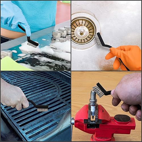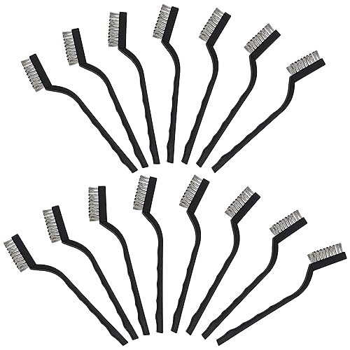 Belle Vous Mini Edelstahl Drahtbürsten Set (15er Set) - Drahtbürste mit Gebogenem Kunststoffgriff und Aufhängeloch - Handwerker Bürste zum Reinigen von Mauerwerk, Metallarbeit, Schweißschlacke & Rost