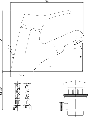 Grünblatt Waschtischarmatur mit herausziehbar Haarbrause (mit Zugstange)