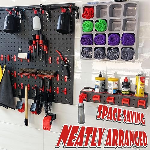 Sprühflaschen Halter, 2 Spraydosenhalter, Sprühflaschenhalter mit Aufhängehaken & Auto Reinigungsbürsten Kits, Garagenwandregale, Wandmontiertes Stahlregal Dosenhalter für Sprühflaschen Ablagegestelle