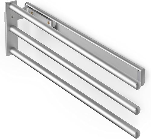 Emuca - Ausziehbarer Handtuchhalter mit 2 Armig, handtuchauszug küche oder Bad aus matt eloxiertem Aluminium, Länge 440mm