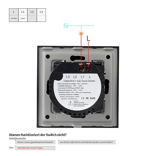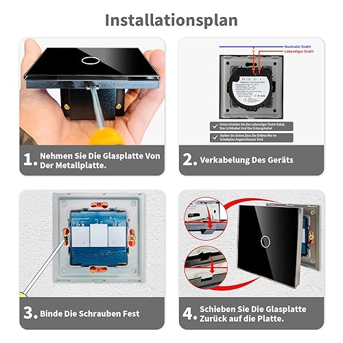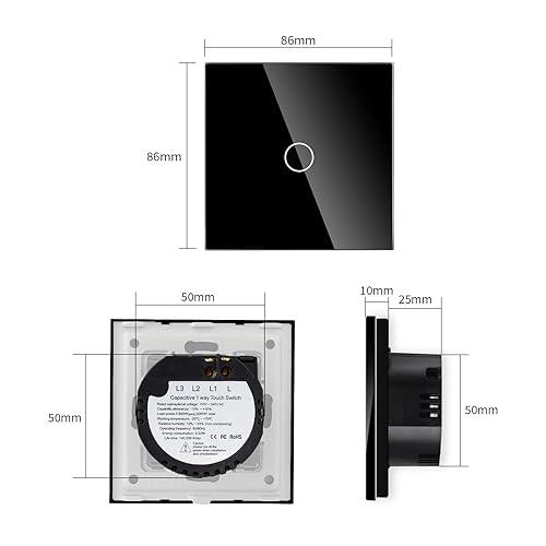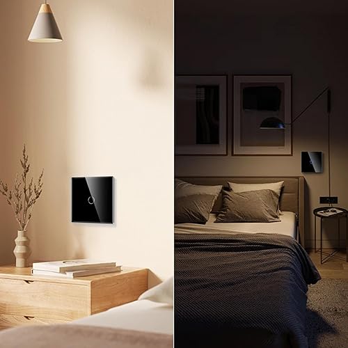 LIAONFOY WIFI Wlan Dimmschalter Unterputz Smart berühren Lichtschalter Glas Touchscreen Schalter LED Dimmer Lichtschalter Schwarz 90-250V 2.4GHz Neutralleiter Wird Benötigt 86mm
