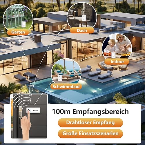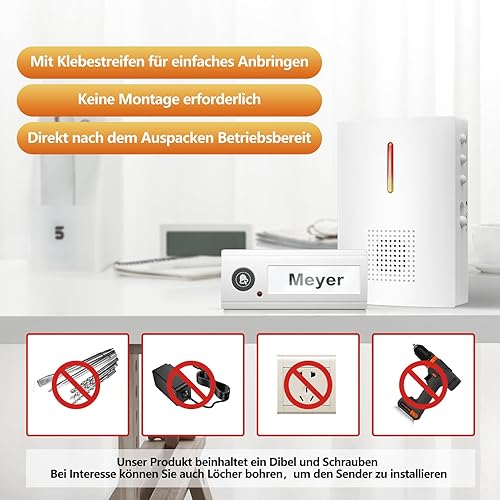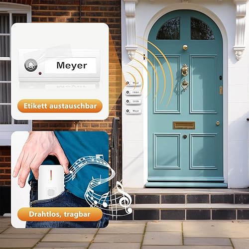 OULE GmbH Türklingel,Funkklingel Set, Funk Türklingel Kit,Kabellose Funk Türklingel,36 Melodien, bis zum 100m Reichweite Rein Batteriebetriebene Klingel (1 Sender und 1 Empfänger)
